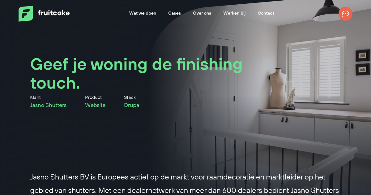 In nauwe samenwerking met het communicatieteam van Jasno Shutters is een Drupal website ontwikkeld. Deze Drupal omgeving is door gebruik te maken van bestaande extensies, in combinatie met maatwerk ontwikkeling, uitgegroeid tot een breed inzetbaar platform voor Jasno Shutters. Meerdere websites, in meerdere talen, worden vanuit de Drupal omgeving aangestuurd.