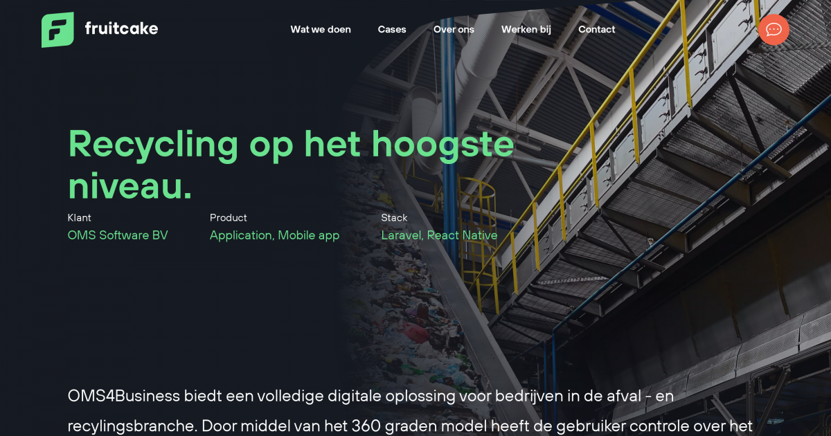Laravel React NativeOMS4Business biedt een volledige digitale oplossing voor bedrijven in de afval - en recylingsbranche. Door middel van het 360 graden model heeft de gebruiker controle over het volledige bedrijfsproces. Denk hierbij aan orderverwerking, planning, operatie en facturatie.