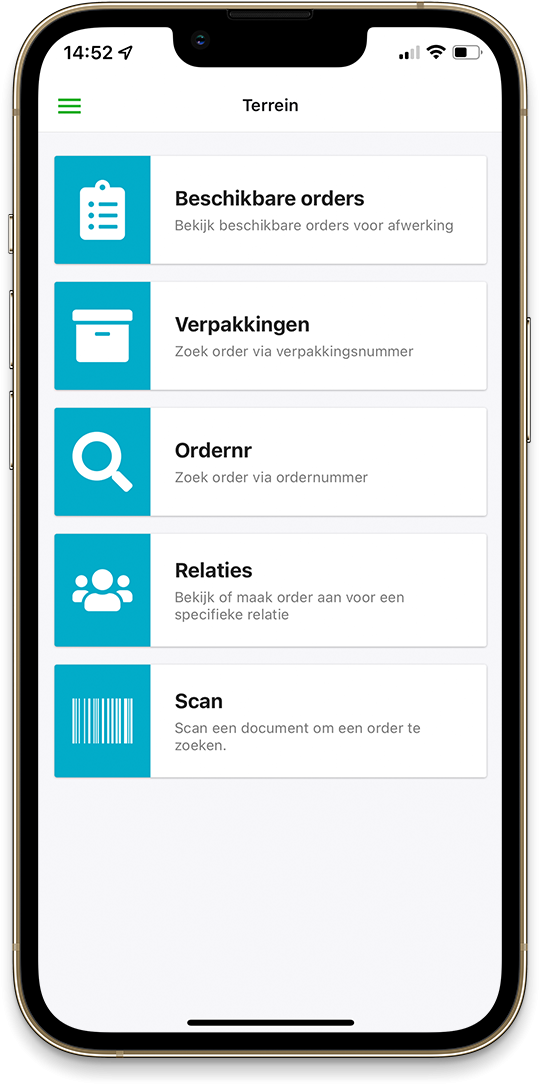 Voor de chauffeurs onderweg, maar ook voor externe klanten is een React Native App beschikbaar. Via deze App kan de chauffeur orders starten, uitvoeren en voorzien van wegingen, foto's of opmerkingen. Dezelfde functionaliteit is beschikbaar gemaakt voor externe chauffeurs.